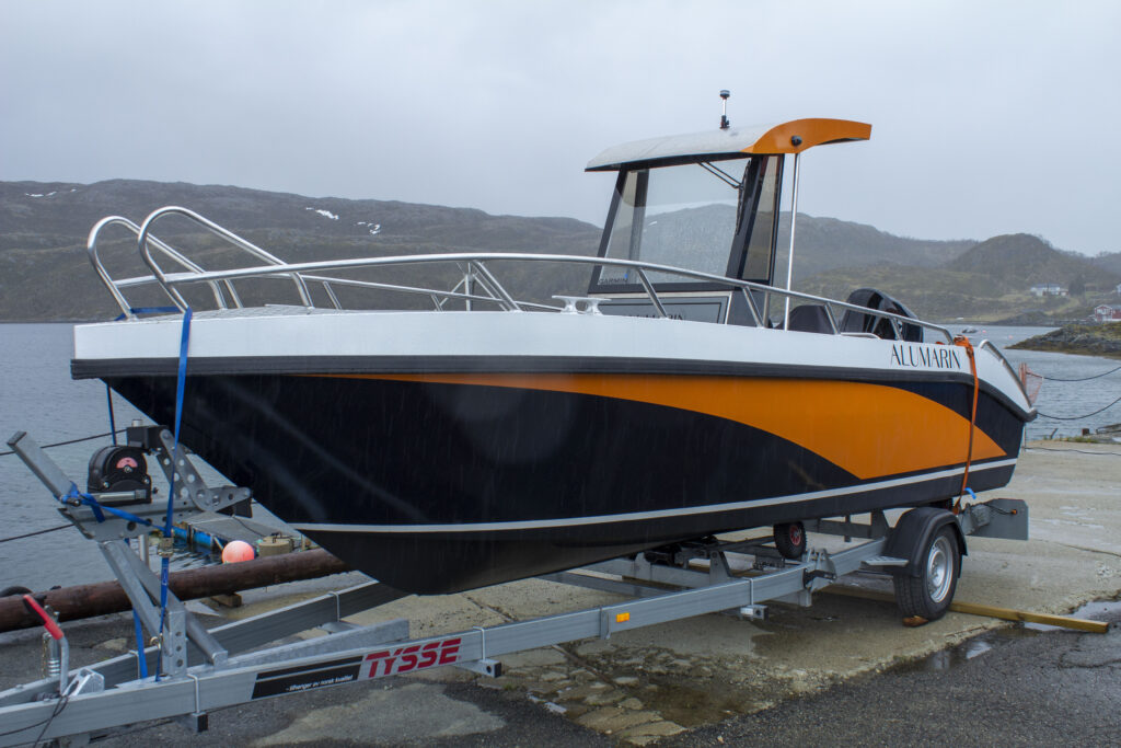 Nová loď Alumarin 23 Ft se závěsným benzínovým motorem o výkonu 140 HP, navigací Garmin, pohodlnými odpruženými sedačkami a zastřešeným prostorem řízení.